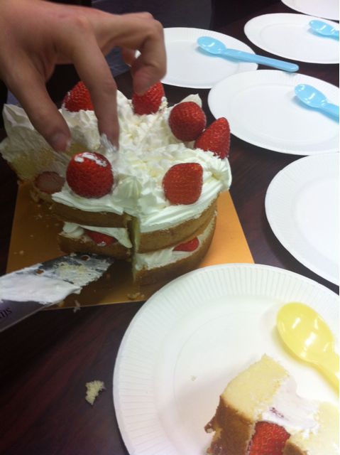 稽古場にて、18期の阿部が誕生日で祝われてましたんで、ケーキを拝借。